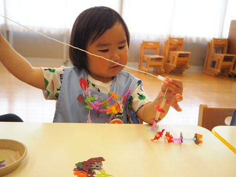 「ゆり組」(満3歳児クラス)の“通す”~モンテのおしごと