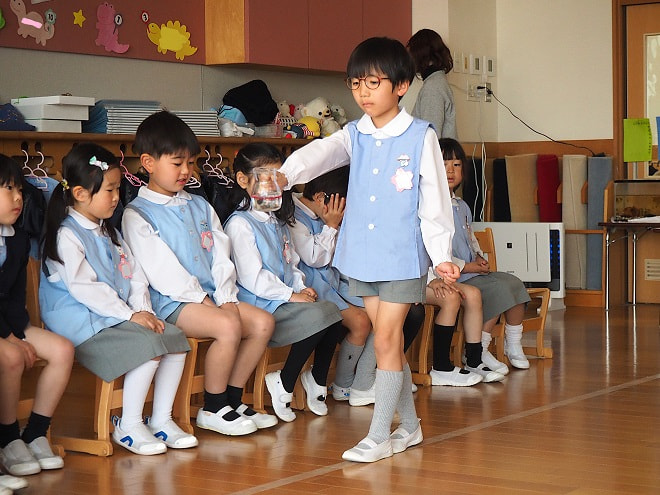毎日制服で登園し、園内ではスモックを着用します。(但し週1回の体操指導の日は、体操服での登園となります。)