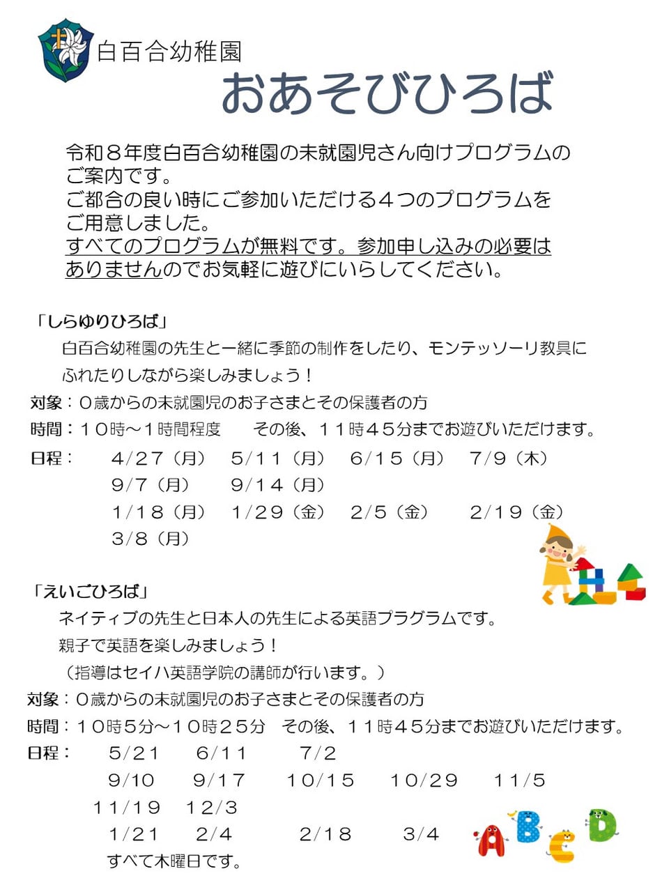 | 2026年(令和8年度)『満3歳児クラス』募集について | |