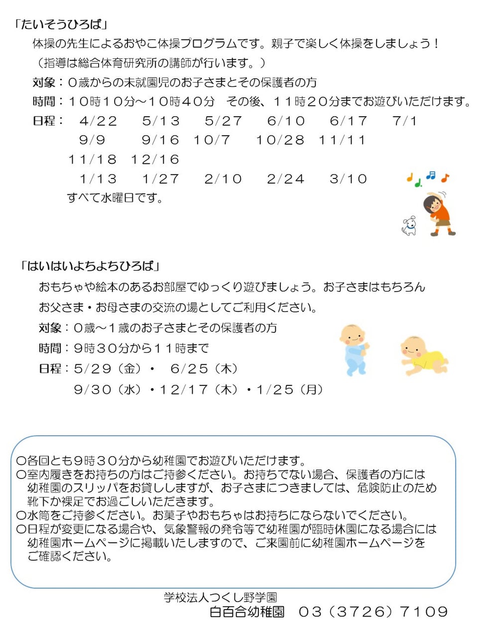 ※詳細につきましては、このページの『幼稚園説明会』・『見学会』・『未就園児お遊び会』の各項目をご覧ください。
