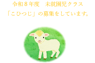 令和8年度の未就園児クラスの申し込みが11月1日より始まっています。「こひつじ」は年少に入る前の学年のお子さまが、お家の方と離れて過ごすクラスです。通室回数は週1回か週2回かをお選びいただけます。