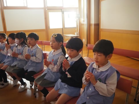 おむすび屋さんのお弁当なので、お米がとってもおいしいお弁当給食。お弁当を作ってくださる方、その材料を作ってくださる方・・・ひとつのお弁当を作るのにもたくさんの方が関わってくださっています。お家でいただくお食事も同じです。「いつもおいしいお食事をありがとう」と感謝のきもちをもち、お米一粒も大切にする心をこれからも子どもたちに伝えていきたいと思います。