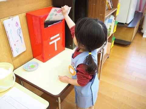 今日はゆり組(満3歳)のお友だちがクラス内でお手紙ごっこを行いましたので、そのご様子をお伝えします。