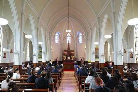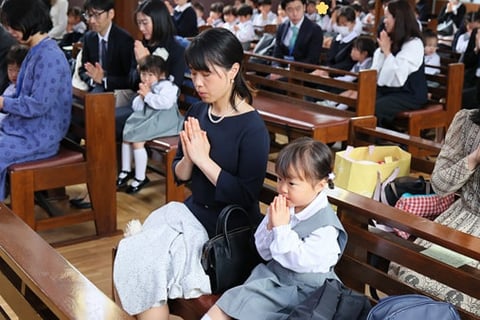 今日から白百合幼稚園の新年度がスタートしました。今日は新入園のお友だちと、進級したお友だちが、それぞれのおうちの方とともに“神様のおうち(教会の聖堂)”に集い、入園式と1学期の始業式を行いました。