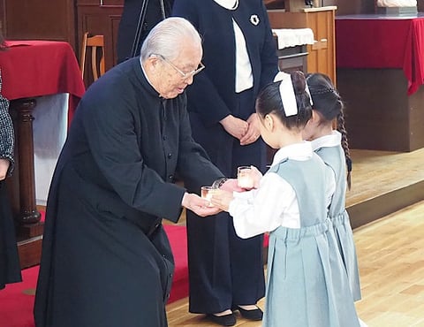 みんなで主の祈りを唱え、聖歌“わたくしたちは”を歌います。