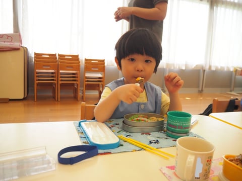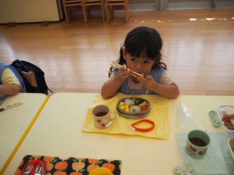 おうちの方に作っていただいたお弁当を美味しくいただきます。