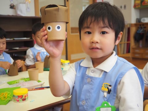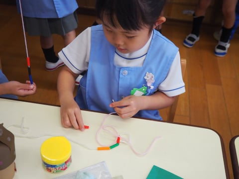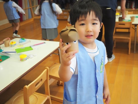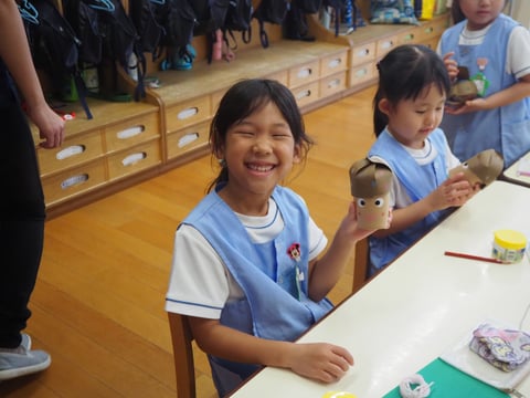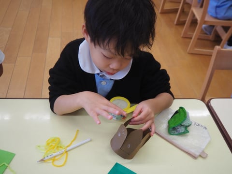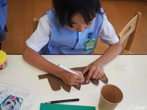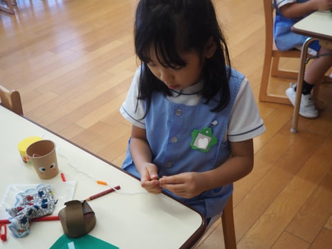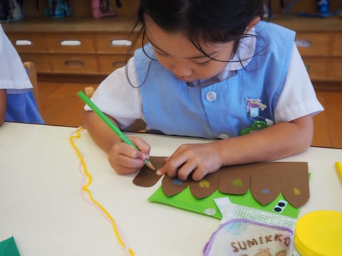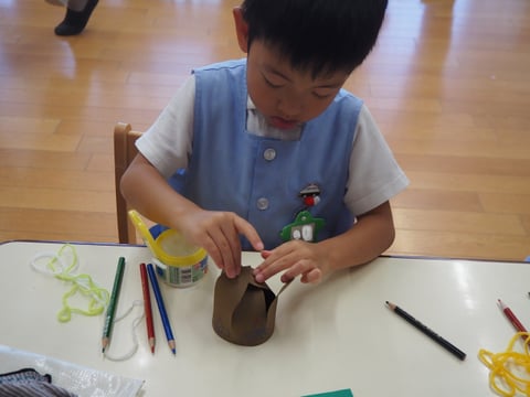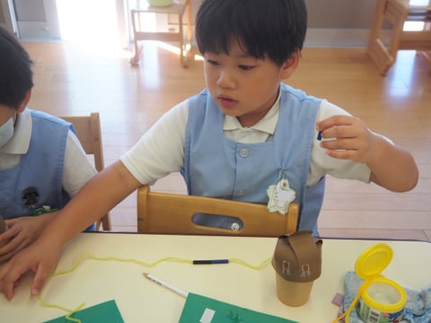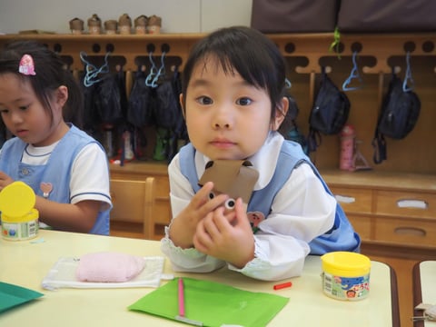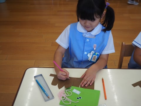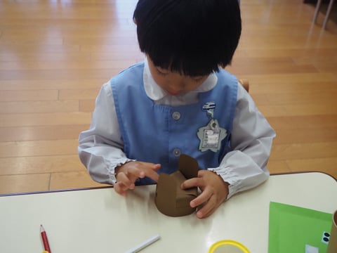 運動会も終わり、しらゆり展の準備など少し芸術の秋を感じます。今日は、すずらん組の制作の様子を見に行きました。