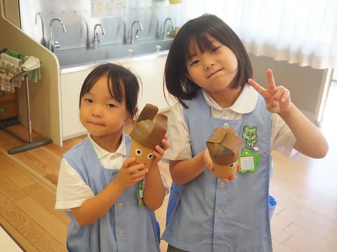 かわいいどんぐりバックの完成です。みんなが丁寧に制作に取り組んでいました!