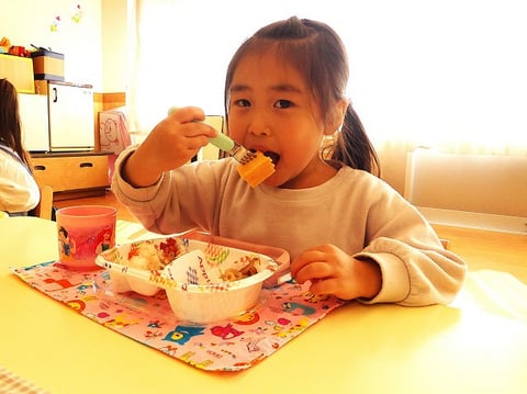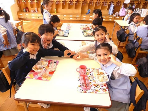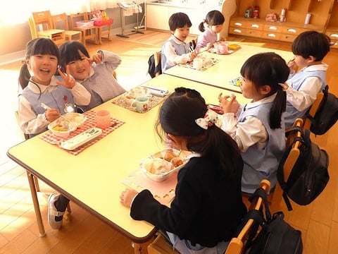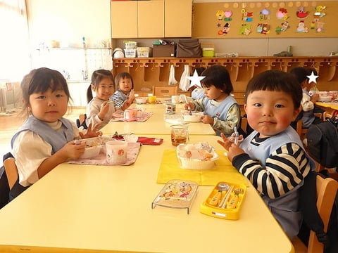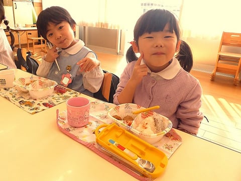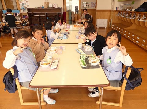 おむすび屋さんのお弁当なので、お米がとってもおいしいお弁当給食。お弁当を作ってくださる方、その材料を作ってくださる方・・・ひとつのお弁当を作るのにもたくさんの方が関わってくださっています。お家でいただくお食事も同じです。「いつもおいしいお食事をありがとう」と感謝のきもちをもち、お米一粒も大切にする心をこれからも子どもたちに伝えていきたいと思います。