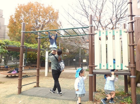幼稚園とは違う遊具があるので、使い方のお約束を確認してから・・・