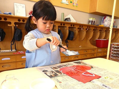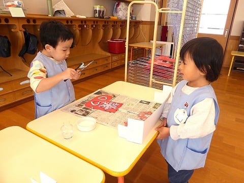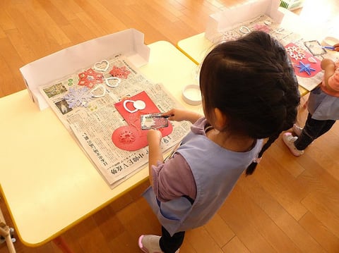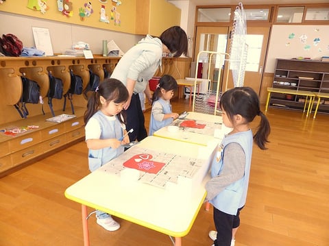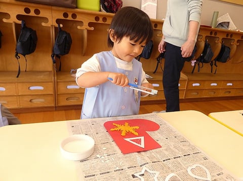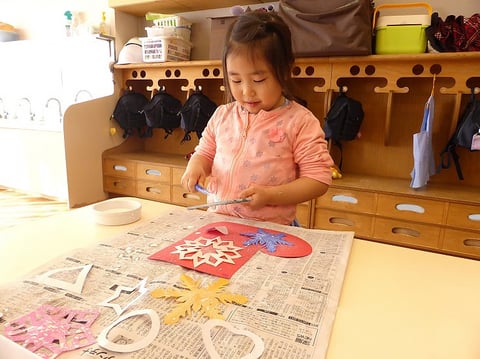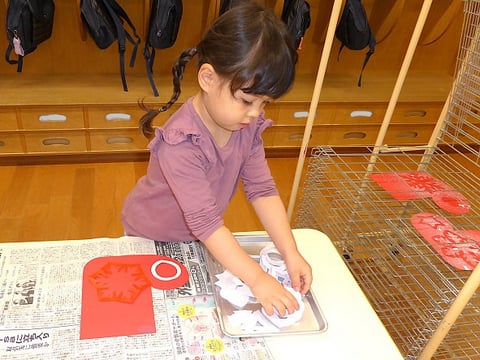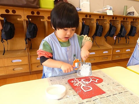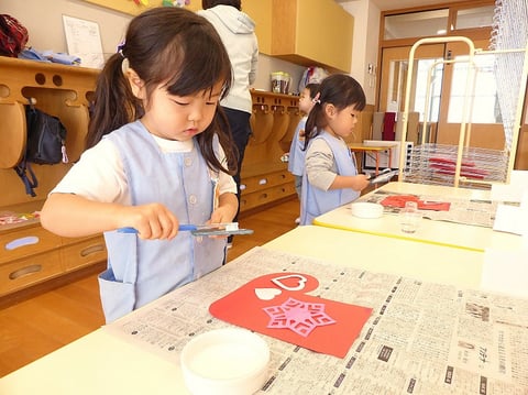 今週の火曜日から明日までの4日間をかけて、ゆり組(満3歳)のお友だちはクリスマス壁面制作に取り組んでいます。