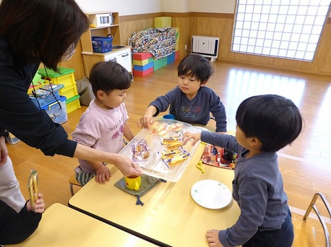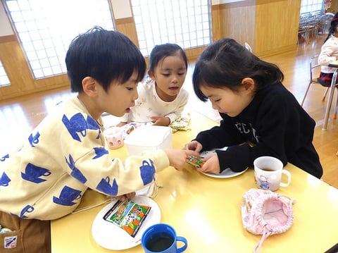 おやつの後は先生に絵本や紙芝居を読んでいただいてちょっとおなかを休めます。