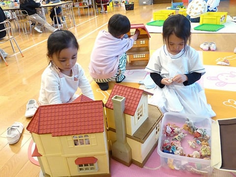 いろいろな場所で、いろいろな遊びをしながら過ごすことのできる、預かりクラス『こすもす』。お家の方がお迎えにみえると、「え、もうお迎えなの?」と言う子がいるくらい、みんなで楽しく過ごす時間はあっという間に過ぎていきます。きっと今日のこすもすでも、子どもたちの笑い声がたくさん聞こえてくることでしょうね♪