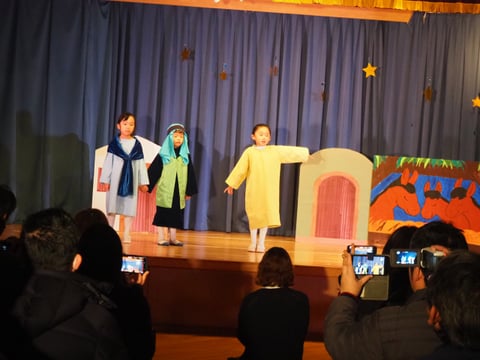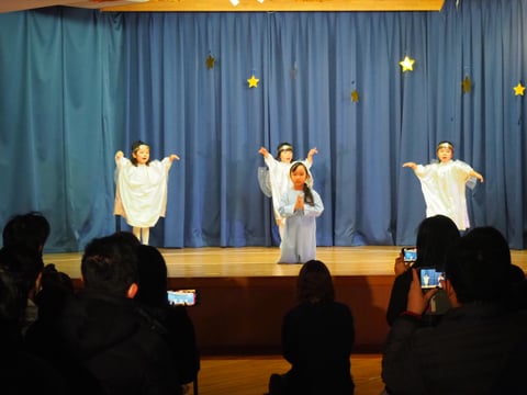 12月13日(土)のクリスマス会は、保護者の皆様に子どもたちからのクリスマスプレゼントとしてそれぞれの学年の発表を見に来ていただきました。