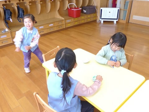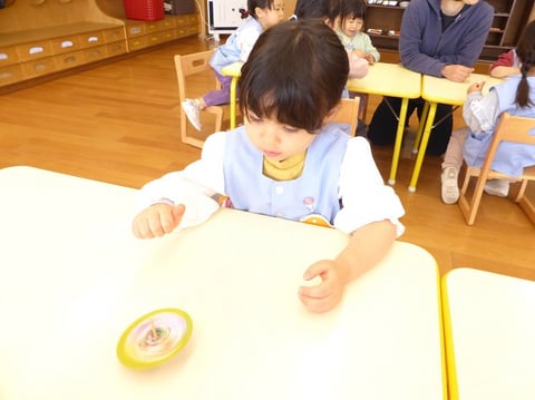 5回、6回と繰り返すうちに上達し、全員がコマを回せるようになったゆり組さん。