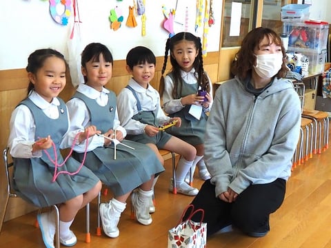 これまでのモンテッソーリ教育活動で取り組んできたお仕事の中からお気に入りの作品、教具/用具を選び、それを持ってポーズを撮ります。