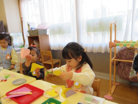 こひつじクラス:豆まき・絵の具制作