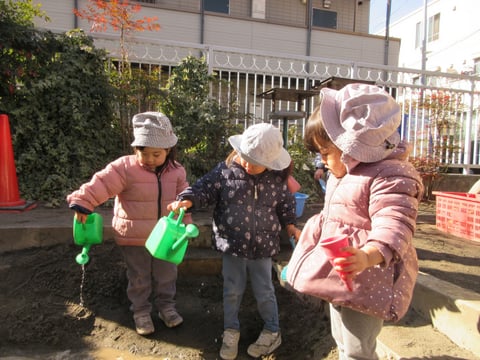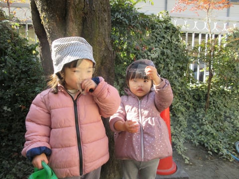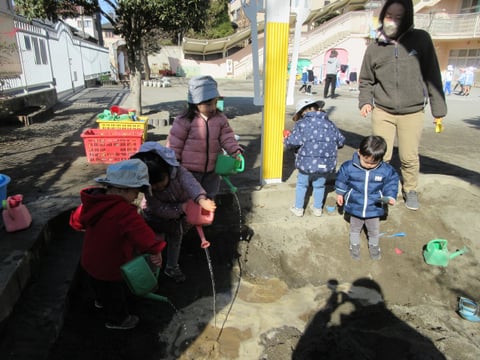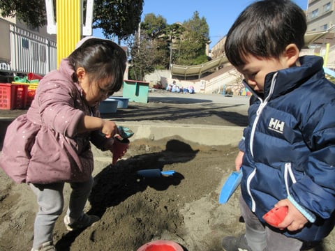 園庭に出ると北風が吹く寒空でしたが、今日も元気に遊びました。