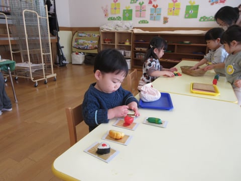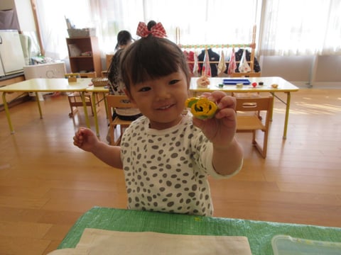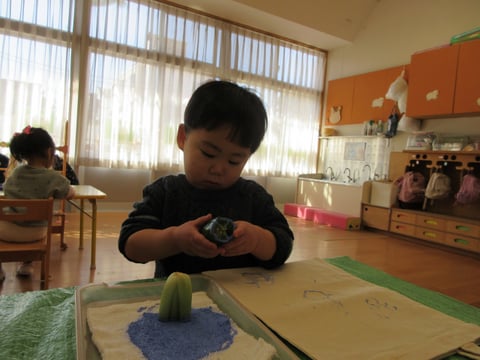 アクリル絵の具の順番がくるまでは、お仕事をしたりおもちゃで遊んだりして過ごしました。