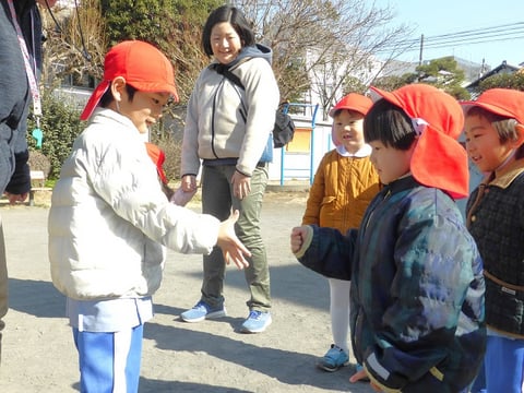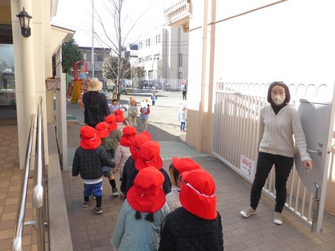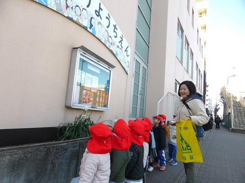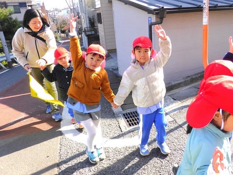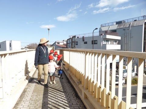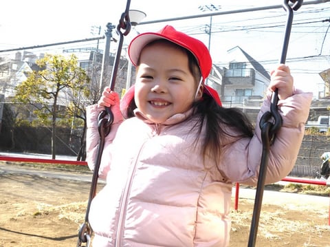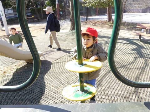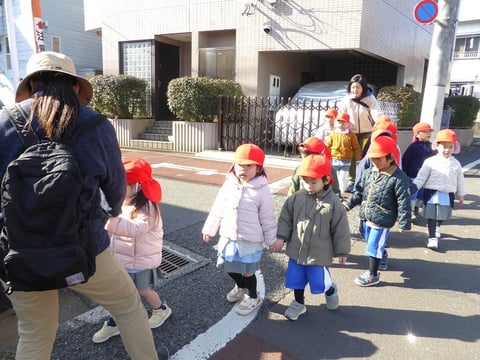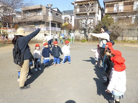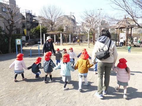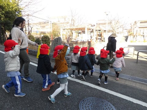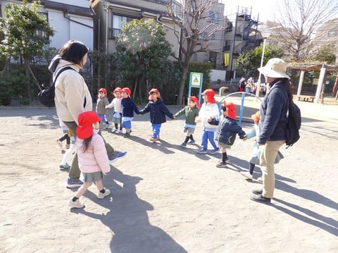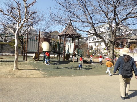 今日はちゅうりっぷさん(年少)が、英語レッスンの後に公園までお散歩に行きました。
