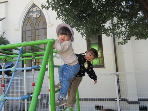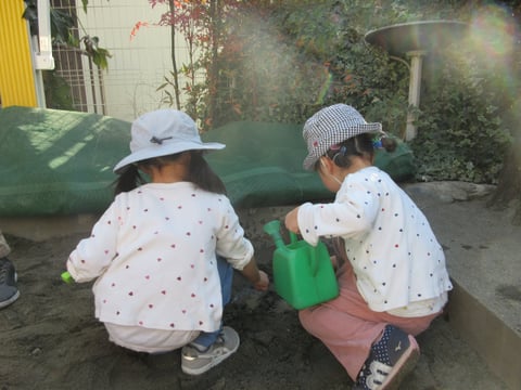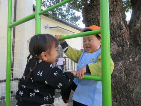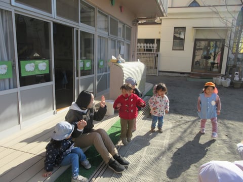 今日の園庭はぽかぽか陽気のお外遊び日和でした。
