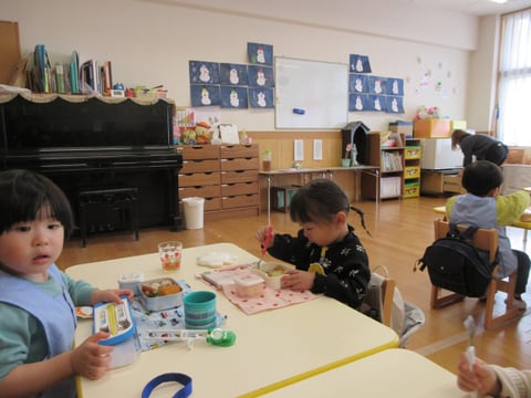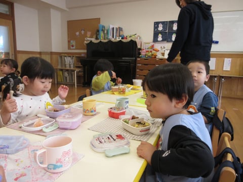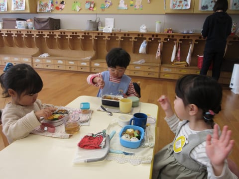 お楽しみのゆり組さんと一緒のお弁当の時間です。