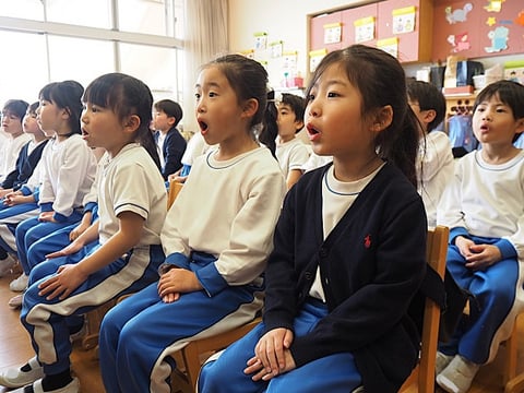 大組さんが卒園式で歌う“おもいでのアルバム”を6番まで歌います。