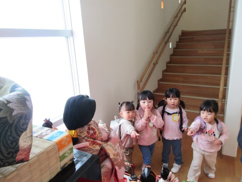 ゆり組さんから、「また、遊びにきてね」と言ってもらい、みんなで「バイバイ」をしてお部屋に戻りました。