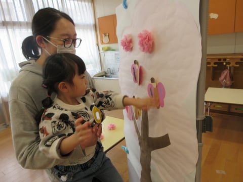 大きな桜の木にちょうちょうとお花を飾って完成させます。