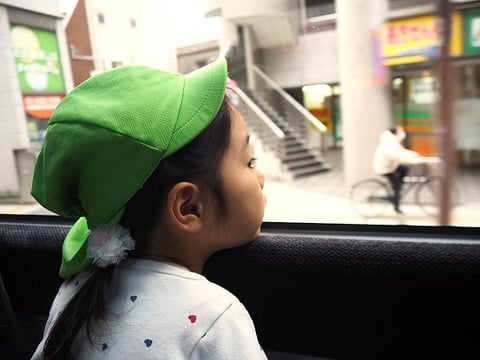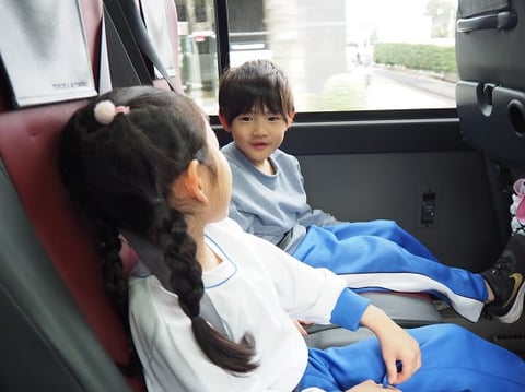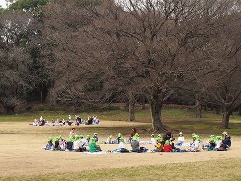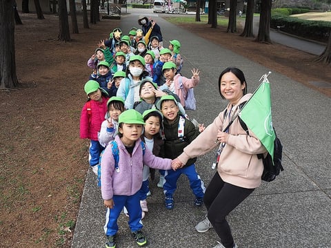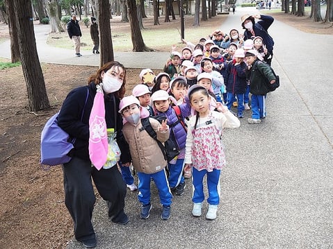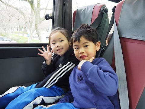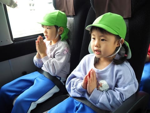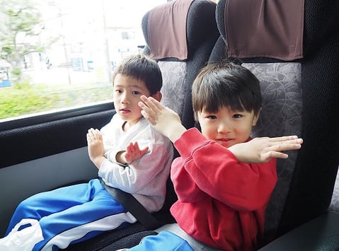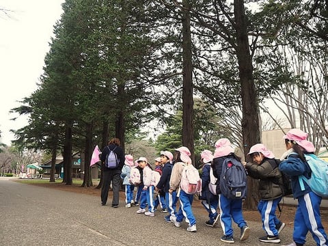 中大組さんは、クラス毎に大型バスに乗って砧公園へ向かいます。
