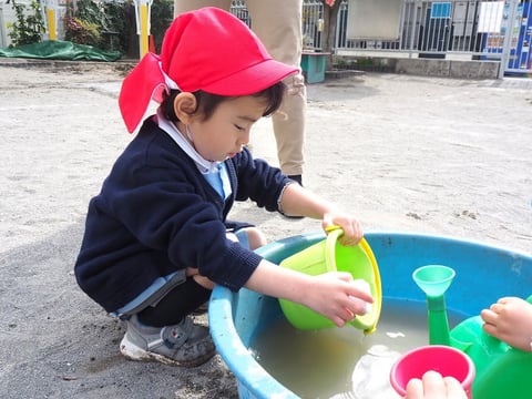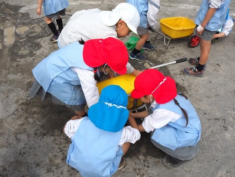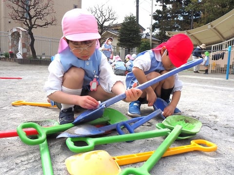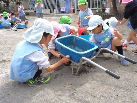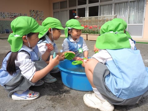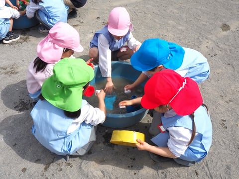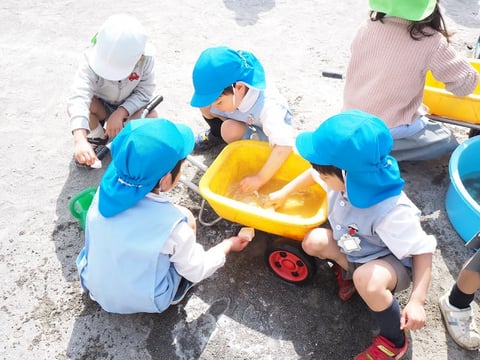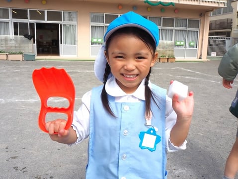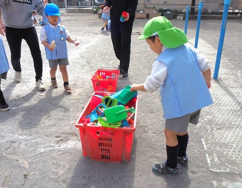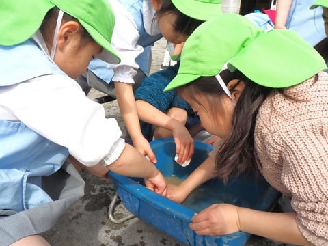 そんな春の温もりを感じる午後、小中大組のお友だちがおもちゃ洗いを行いました。