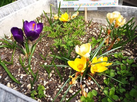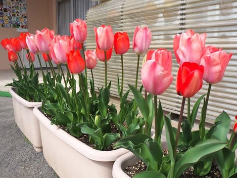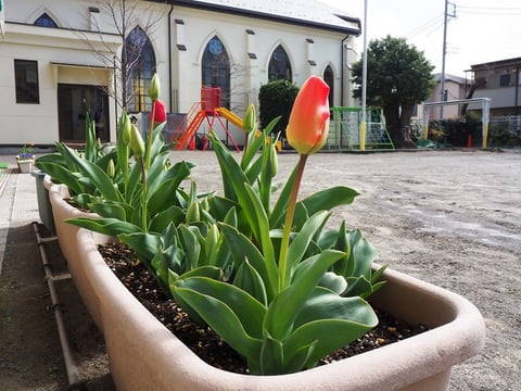 ちゅうりっぷさんの方が日当たりがいいのと、チューリップの種類が違うので、花が咲く時期が少しずれたようです。すみれさんのチューリップが咲きそろう日が楽しみですね!