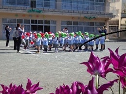 朝の体操が始まりました 2026年4月 8日 12:06 白百合幼稚園は今日から通常の生活が始まりました。朝のお支度が終わった子どもたちは、みんなが揃ったところで朝の体操をするために、園庭に集まります。青空の下、大きなお声で「おはようございます」。園庭のお花も元気な子供たちの様子をうれしそうに見つめていました。お天気がいいので、体を動かすと気持ちもすっきりします。