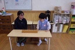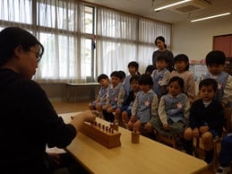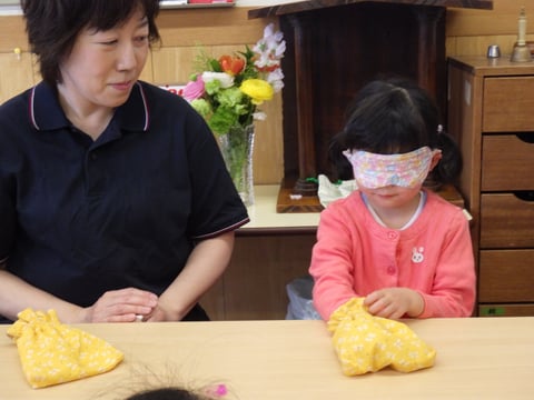 中・大組さんの“お仕事” 2026年4月10日 12:59 さくら組さんとすずらん組さんのお友だちは、それぞれの担任の先生から、新しい“お仕事”を教えていただきました。「円柱差し」を教えていただいた、さくら組のお友だち。先生の手もとを真剣に見つめるさくら組のお友だち。お友だちが挑戦します。すずらん組のお友だちは“秘密袋”に挑戦です。「こんどはぼくもやってみよう……」。